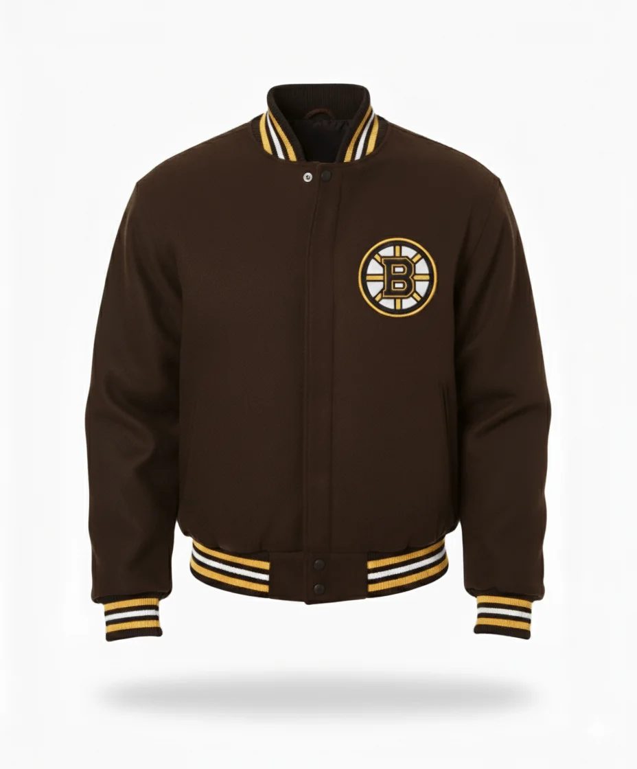 Cut at waist length for a clean, athletic silhouette, the Boston Black Wool Bomber Jacket offers that effortless tailored fit you can feel. Its dark brown wool blend delivers warmth without bulk — soft to the touch, yet structured enough to hold its shape. The rib-knit stand collar and cuffs give it that varsity-inspired finish, while the subtle sheen of the fabric catches light in all the right places. Whether you’re layering it over a hoodie for casual days or a crisp tee for night drives, it elevates every look instantly.