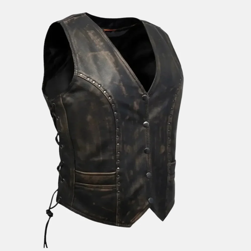 Ella Women’s Studded Distressed Brown Leather Vest for Boho Style