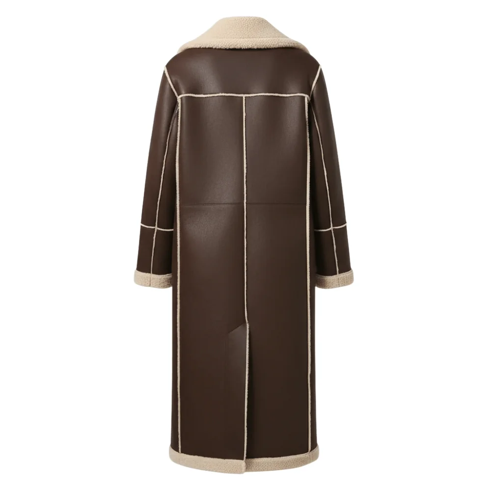 The real leather exterior provides structure and luxury feel. The faux shearling lining keeps you warm while adding plush softness. The tailored trench fit elongates your silhouette, creating a flattering, commanding presence. The buttoned closure keeps everything clean, secure, and premium. Every feature feels intentional. Every detail works to support comfort and confidence.