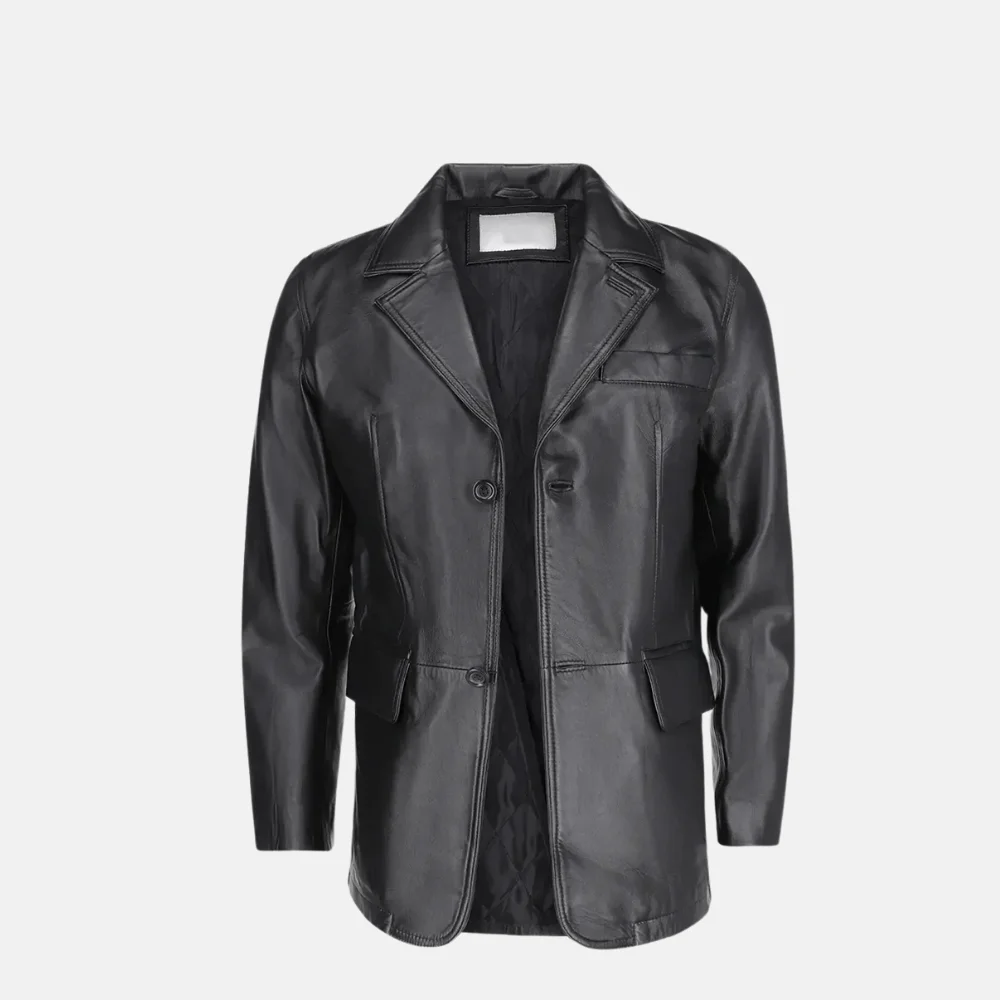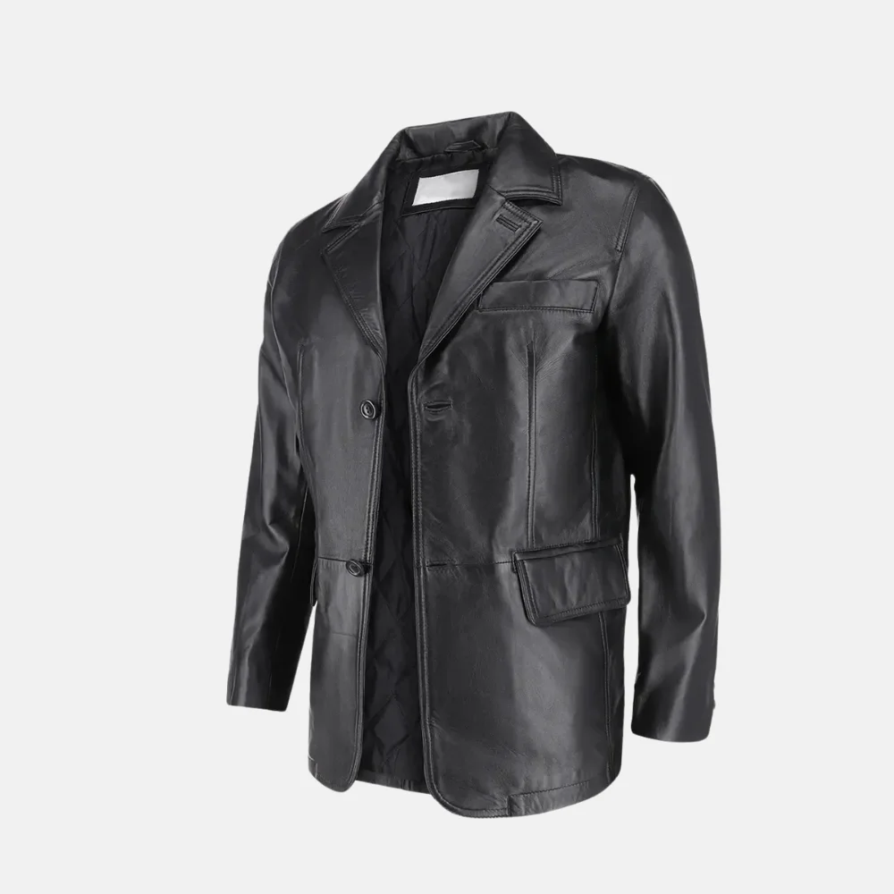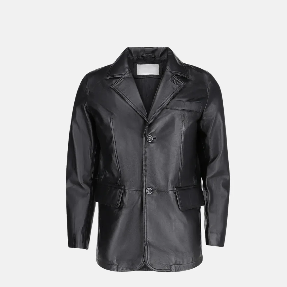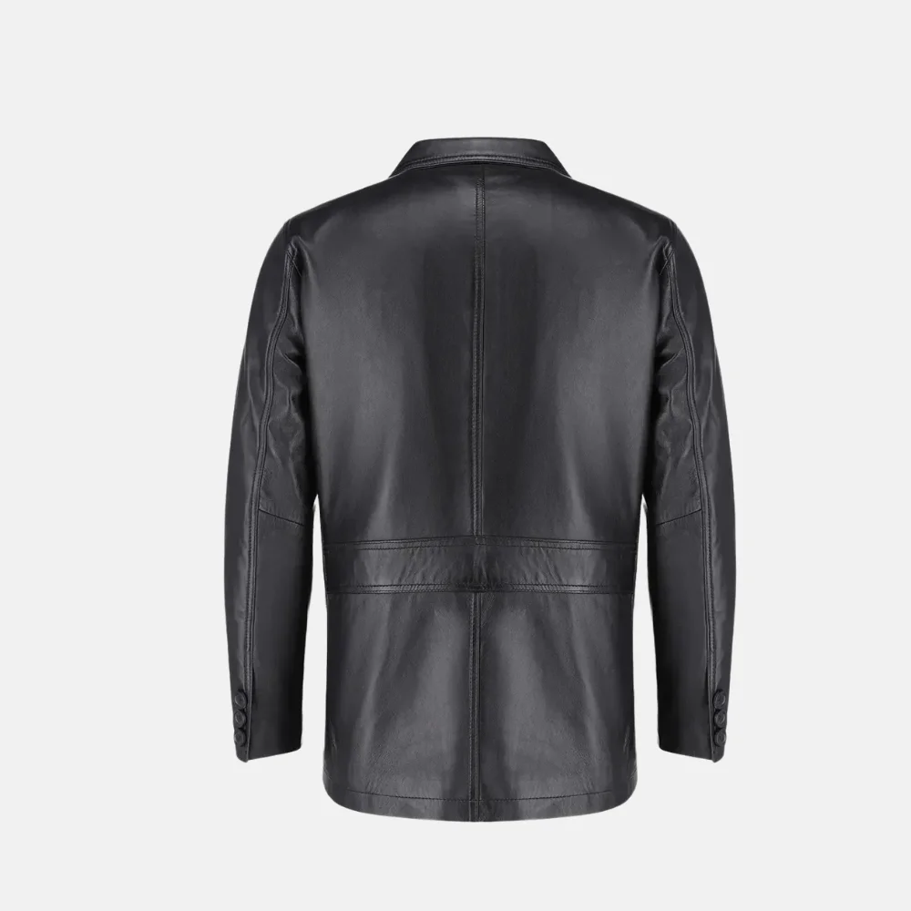 Zane Men’s Classic Black Leather Car Coat with Slim Fit Design